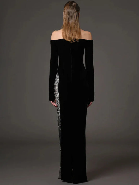Women's Rhinestone Beaded Off The Shoulders Maxi Dress