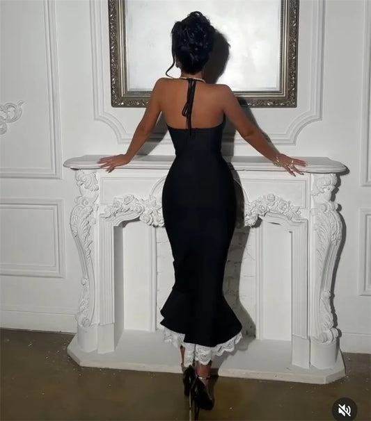 Black Mermaid Maxi Dress with Floral Trumpet Hem